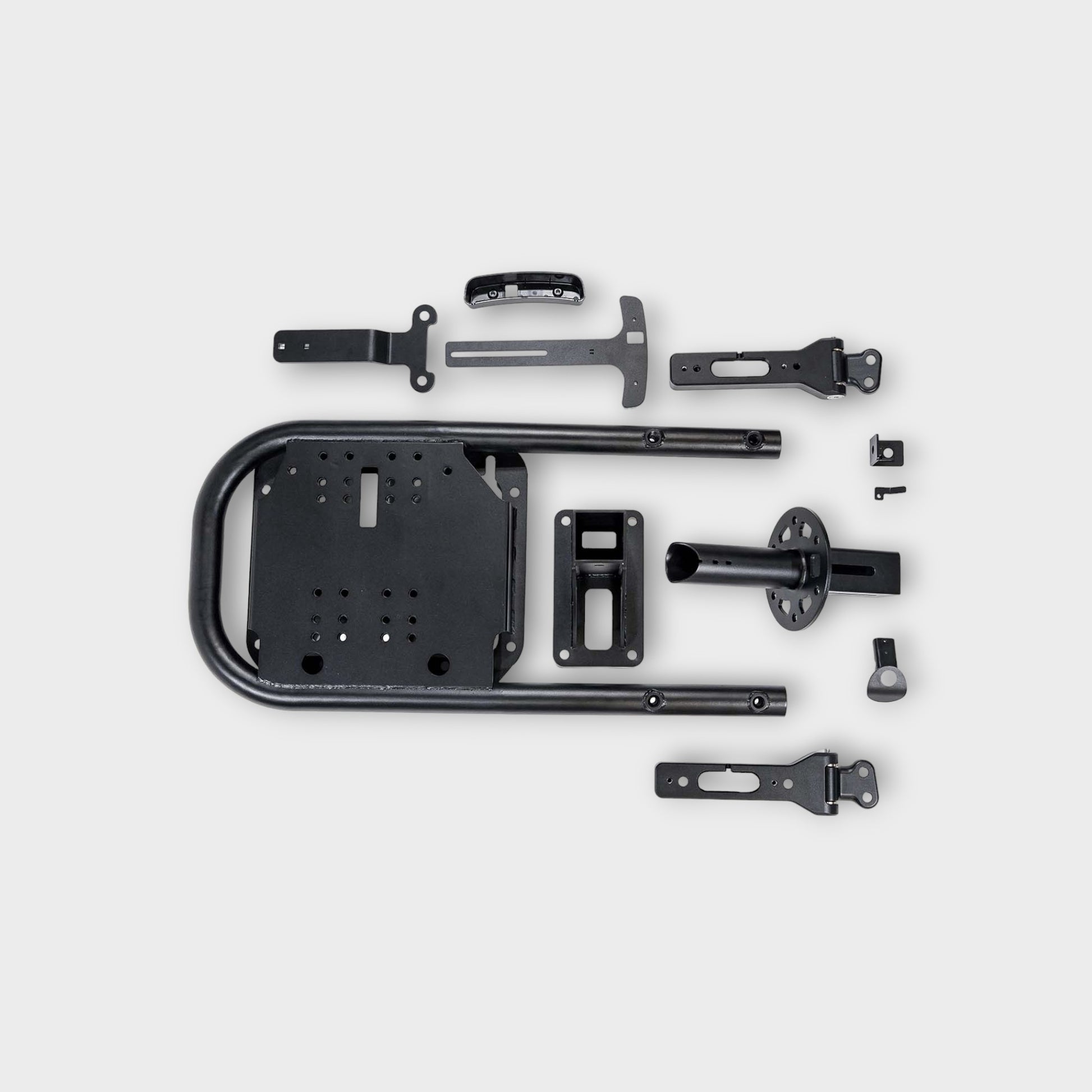 Modern Aggressive RTR Styling The Bronco RTR Spare Tire Carrier was designed with off-road enthusiasts in mind. With large spare tire mounting, fitment for OE back up camera, and a modular design for additional RTR accessories, the Bronco RTR Spare Tire Carrier is trail ready without compromise. Spline nuts are included for additonal security on and off the trails. No fake bolts here, only modern, aggressive RTR styling. High-Quality Construction The Bronco RTR Spare Tire Carrier is made from heavy gauge 1.75-inch DOM steel tubing and comes standard with a black powder-coated finish for added grip. This spare tire carrier is adjustable in horizontal, vertical, and depth positions. Simple, Straight Forward Installation The Bronco RTR Spare Tire Carrier is designed using OE CAD data. The spare tire carrier installs with the OE mounting points so there is no cutting or permanent modification required for a clean, straight forward installation. Features: ·      RTR Aggressive Tactical Styling ·      RTR Adjustable Tailgate Stop can be found here ·      *This Item Has A $25 Handling Fee* ·      Modular design - additional RTR tailgate accessories available ·      Larger spare tire mounting - Adjustable positioning and depth ·      Adjustable 3rd brake light position ·      Spline lug nuts included for added security ·      CNC machined 6061-T6 aluminum hinges ·      2 stage powdercoat for added corrosion protection ·      RTR Spare Tire Carrier Weighs 54lb What's in the Box: ·      CNC Hinges ·      Tire mounting weldment ·      Tire mount extension and support ·      Camera Mount ·      Adjustable brake mount ·      Hinge alignment guide ·      Installation hardware Installation Time: (approx.) 4-6 hours Difficulty Level: Moderate to professional skill required |