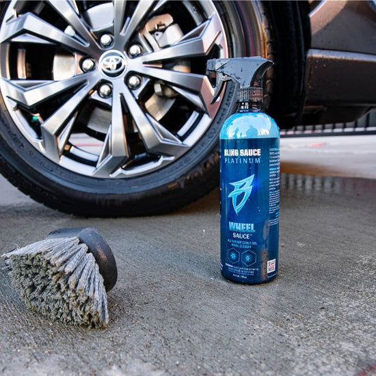 Generously spray WHEEL SAUCE onto a cool wheel and allow to sit for 1-2 minutes. Gently agitate with a light bristle brush. Rinse away grime and product residue from wheel and tire.