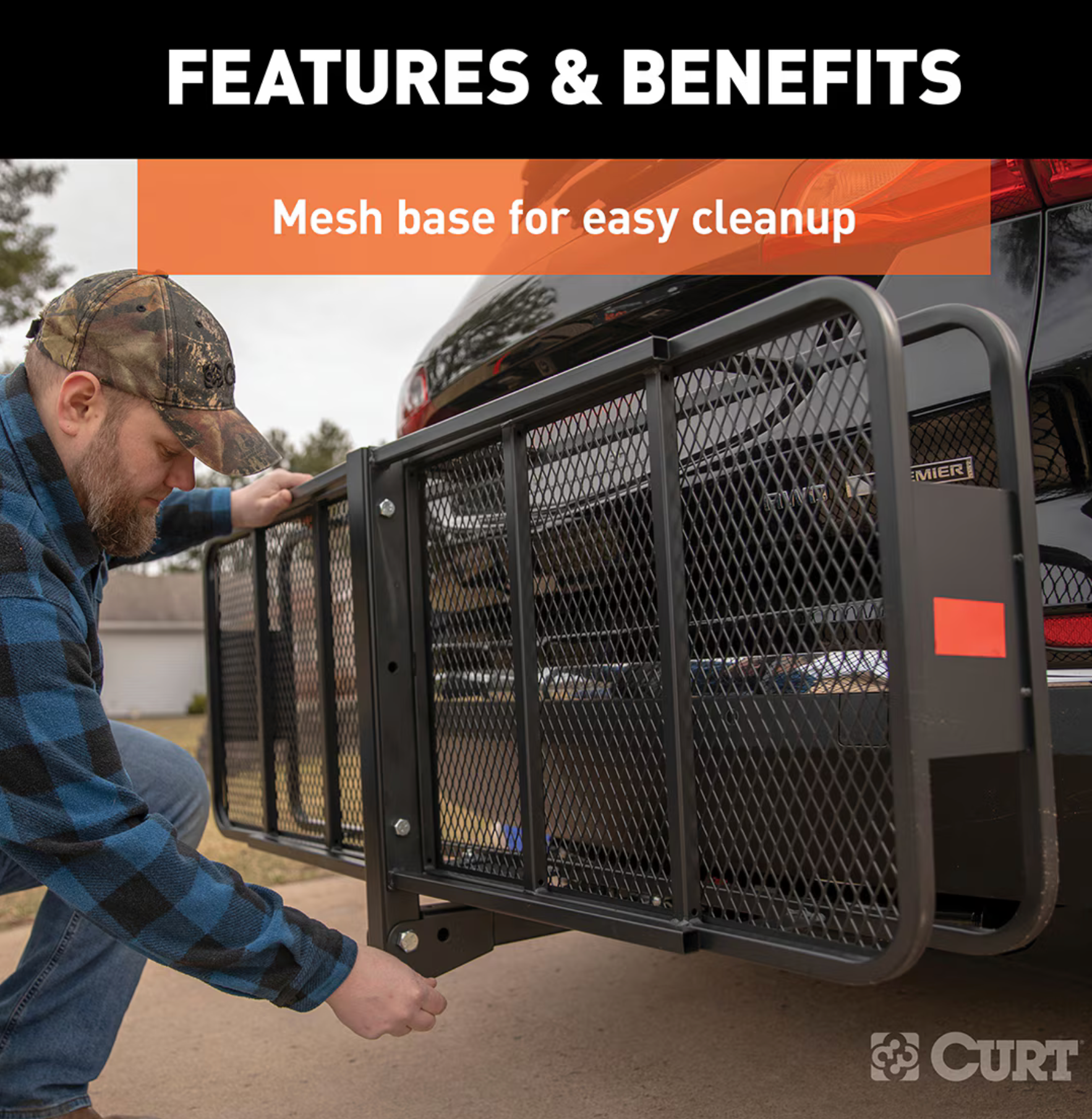 Help free up space inside the vehicle for passengers and cargo with this Hitch-Mounted Cargo Basket.- 6 inch tall sides help keep items more secure during travel