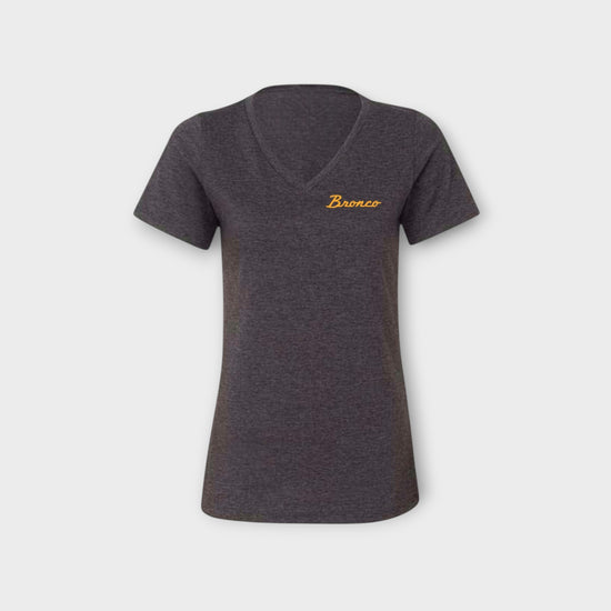 Built for the women who lead the way on every adventure, this Bronco Nation V-neck tee brings comfort, confidence, and classic Bronco energy wherever you go. Soft, flattering, and ready for anything, it features a bold bucking bronco graphic that celebrates the spirit of the ride and the community behind it.