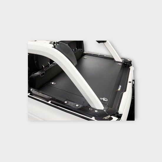Organize and secure the gear in the back of your Bronco. Sensitive items remain securely hidden from view with the vehicle top on or off.