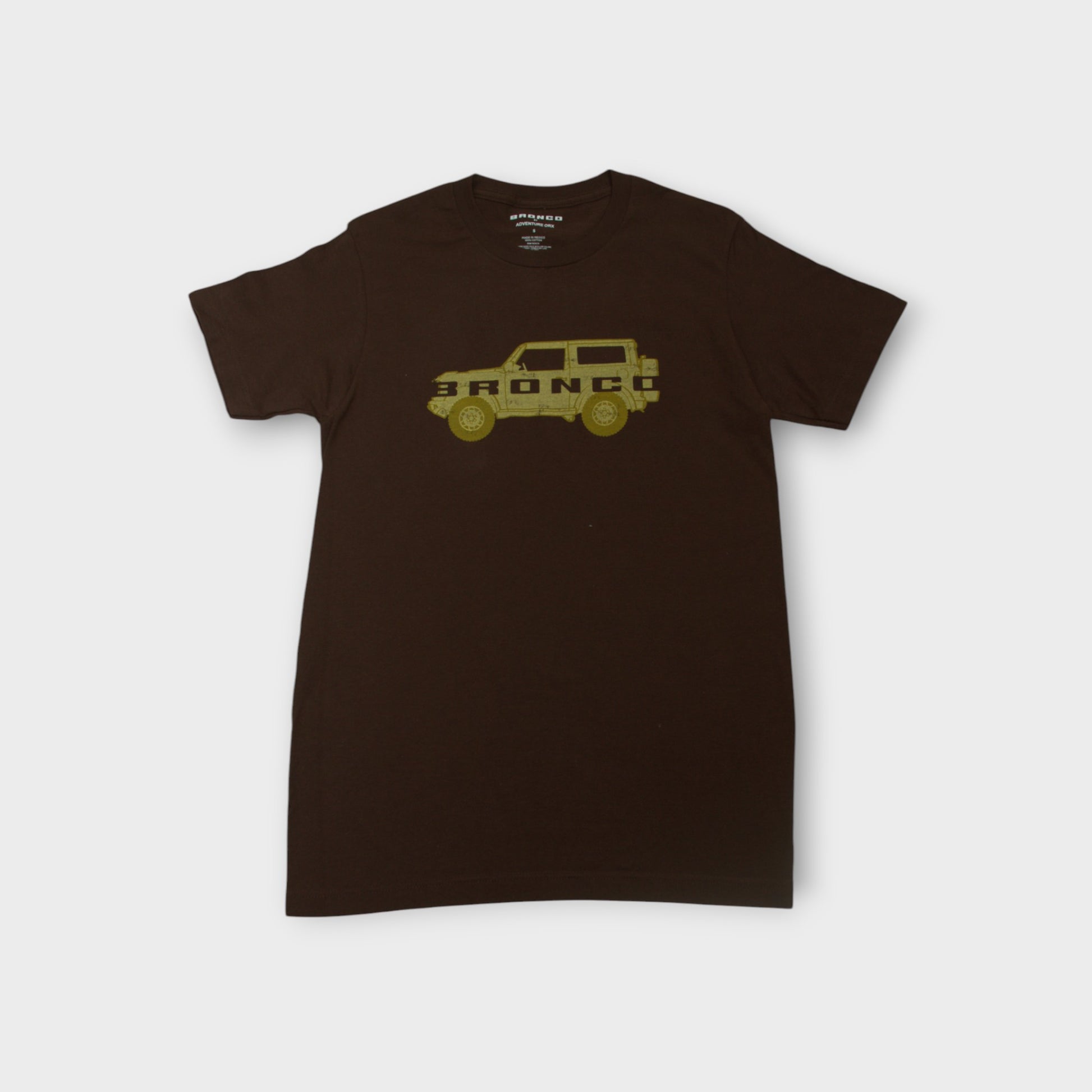 Everyone is loving the look of the all-new Bronco, so we put it on a Tee. This classic short-sleeved style has an illustrated two-door Bronco screen-printed front and center, with the BRONCO brand name going all the way across; like a big, bad, bold pinstripe.